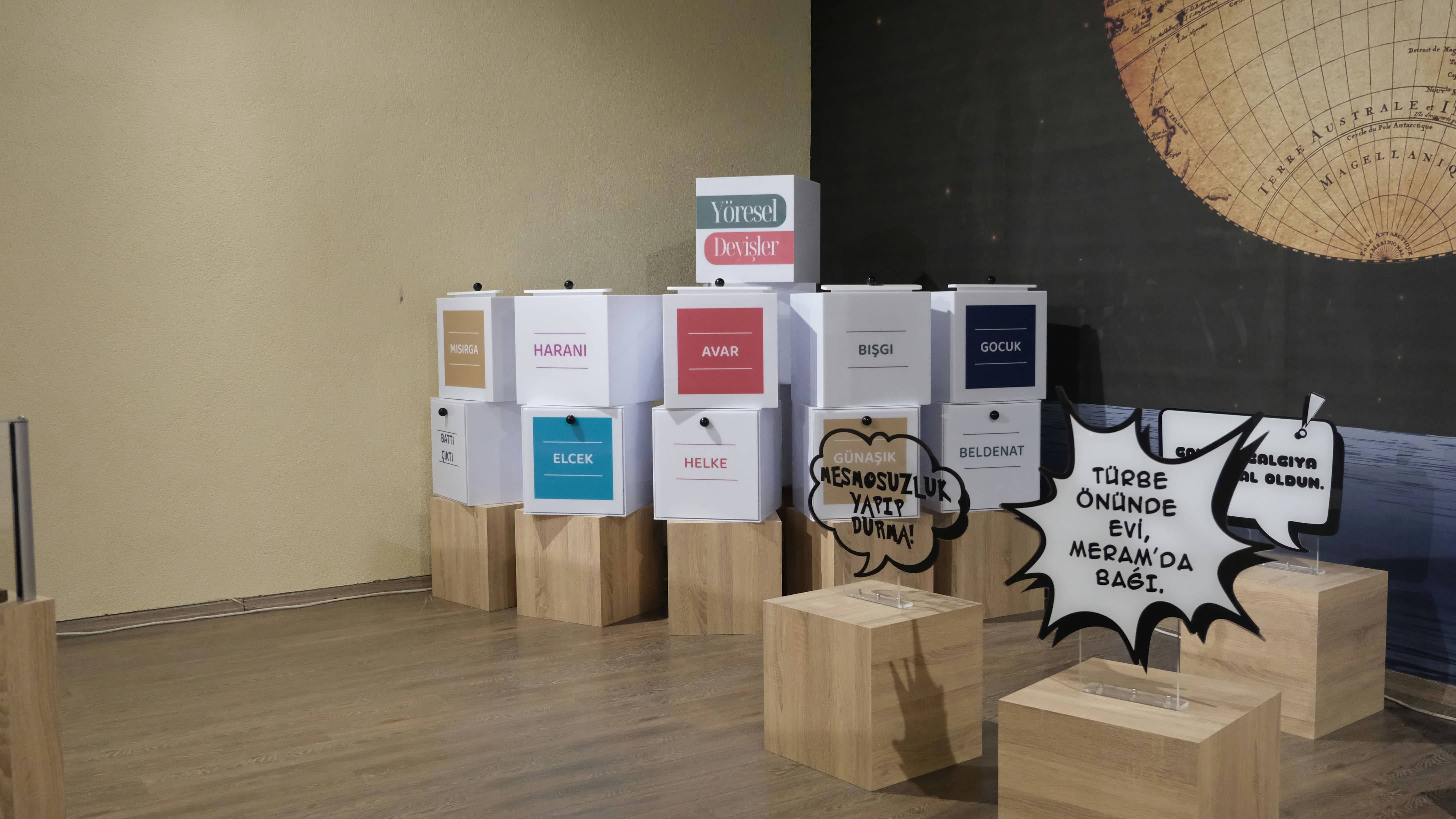 Sözcüklerin Serüveni Sergi Galerisi 26 farklı düzenekle sözcüklerin serüvenini, dillerin kökenini ve gelişimini keşfetme fırsatı sunmaktadır. Ayrıca bu sergi ile ziyaretçilere Türk dilinin zengin kültürel mirasını keşfedebilme ve sözcüklerin tarihsel yolculuğunu gösteren benzersiz bir deneyimi elde etme imkânı sunulmaktadır. Sergi alanında Yöresel Deyişler, Rosetta Taşı, Günümüzden Sina’ya, Mors Alfabesinden Günümüze İletişim, gibi çeşitli interaktif düzenekler yer almaktadır.